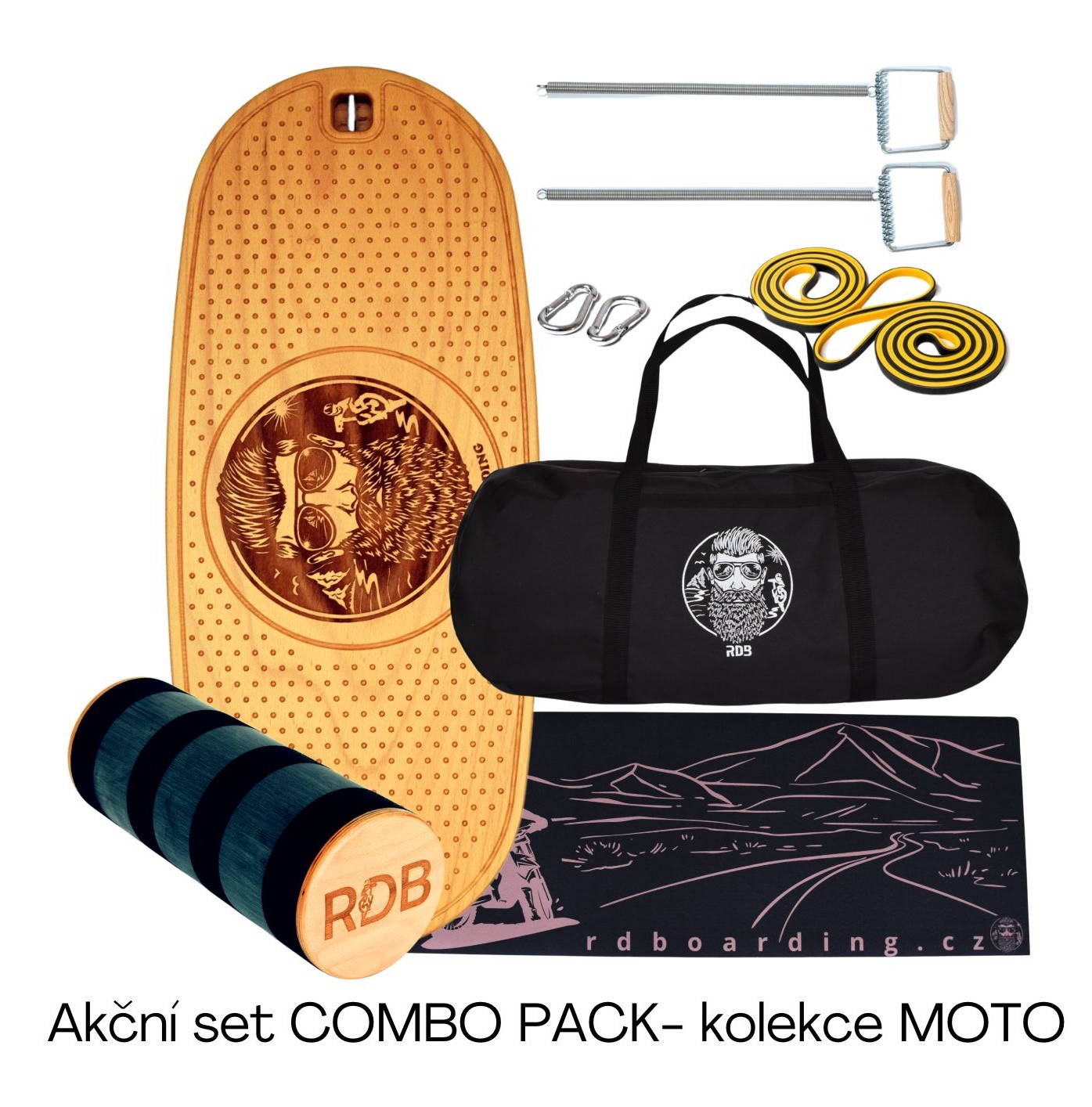 FITBOARD COMBO PACK ti dá vše, co potřebuješ – desku, podložku, tašku a cvičící pomůcky, které mění každé cvičení na komplexní zážitek. Pomůcky se dají snadno připevnit k desce a umožní ti provádět rozmanitější a intenzivnější cviky – pro silnější tělo a lepší rovnováhu.