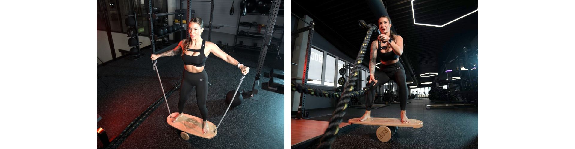 - Posilovací lana - známá také jako battle ropes, jsou skvělou pomůckou pro dynamický trénink celého těla. Kombinace těchto lan s fitboard deskou přidává do cvičení zcela nový rozměr, kdy dochází k současnému posílení svalů, zlepšení stability a koordinace. Tento trénink nejen rozvíjí svalovou sílu, ale také výrazně zapojuje hluboký stabilizační systém těla. Spojení dvou pomůcek – balanční desky a posilovacích lan – vytváří komplexní trénink, který je náročný na rovnováhu, ale přináší skvělé výsledky.