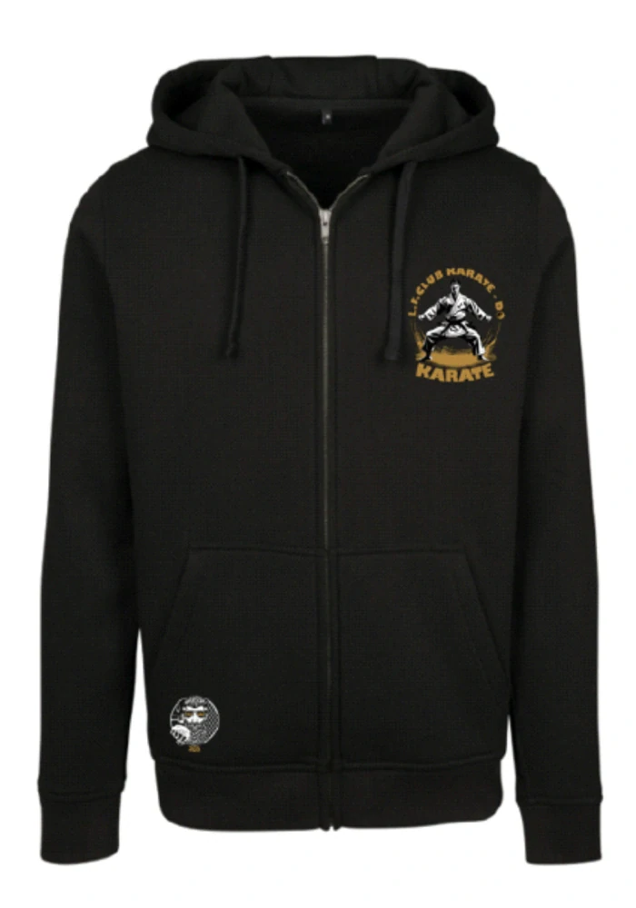 Černá mikina KARATE TEAM s kapucí a zipem spojuje pohodlí, moderní design a reprezentativní styl. Zlaté logo klubu dodává mikině prémiový vzhled, díky kterému je ideální pro soutěže, tréninky i běžné nošení.